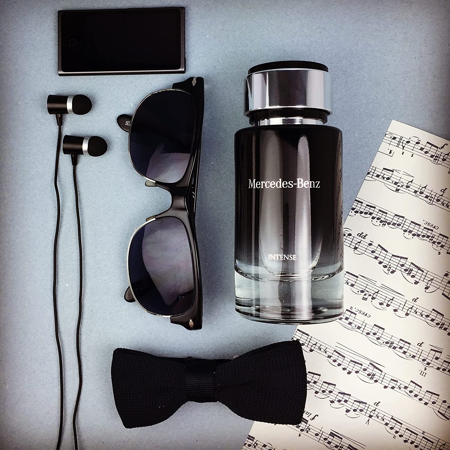 Mercedes-Benz Intense mở đầu với sự pha trộn các thành phần tươi tắn, gợi cảm của chanh, quýt Ý, lá hoa tím, và cam bergamot vùng Calabria. Hương giữa có chứa các nốt hương của hoa tím, hạt nhục đậu khấu, hạt tiêu bourbon và nhựa galbanum. Nốt hương cuối được hoàn thiện bởi cetalox, cỏ vetiver, gỗ tuyết tùng, hoắc hương Indonesia, tất cả cùng hòa quyện tạo nên một nền tảng hương thơm đẳng cấp nhưng hấp dẫn.